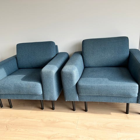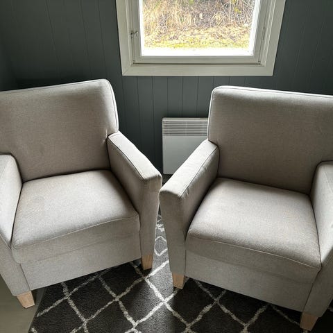 To store lenestoler selges billig. Den ene er defekt, uttrekket til fotskammel fungerer ikke. Selges samlet, hentes i Søgne snarest. Må bæres ned fra 2 etasje av kjøper.