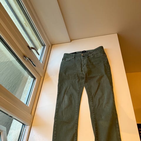 Helt nye bukser fra merket The Quartermaster, laget i Italia i flott solid bomullsstoff. Jeg kjøpte dem på nett, men de er altfor trange i livet for meg. Det står strl 32 på dem, men jeg vil tro de er nærmere strl 29/30 i jeans-størrelse i livvidden, mens lengden er ca strl 32. Så de passer en slank/tynn person på rundt 1,80. Bør ideelt sett prøves, men jeg kan også sende. De har ligget en stund i skapet etter jeg kjøpte dem, så setter prisen til 800kr, originalpris var 175 britiske pund.