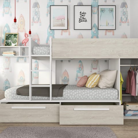 Kvande & Nordvik - Holmgård køyeseng i hvit + sengebunner, skuffer og madrasser