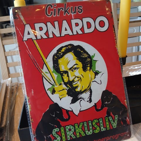Sirkus Berny metalskilt retro repro selges