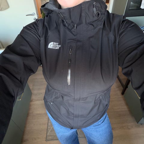 The North Face jakke for dame i størrelse M. Jakken er blå og laget i nylon. Den har hette, belte i livet og flere lommer foran. Passer som ytterjakke i hverdagen eller til tur og fritidsbruk.