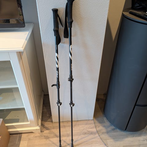 Black Diamond teleskopiske gåstaver i aluminium. Stavene har tre ledd som justerbar lengde opp til maks 130cm. Ergonomiske håndtak med håndstropper.