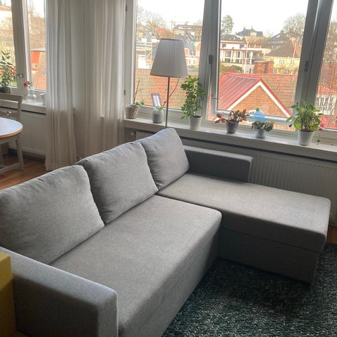 3-seters sofa med divan og nakkestøtte.