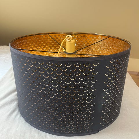 Lampeskjerm fra i IKEA i serien NYMÖ. I svart/messing, 44 cm i diameter og 33 cm i høyde. I veldig god stand :)
