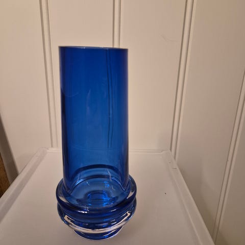 Glassflasker i dekorativt design med runde segmenter langs kroppen. En flaske i blått glass og en i grønt glass. Smal hals og liten åpning gjør dem egnet som pyntegjenstander, for eksempel til enkle blomster eller som dekorative elementer på hylle, bord eller i vinduskarm. Selges som sett med to flasker.