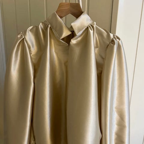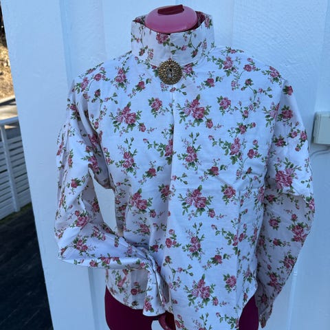 Selvsydd skjorte til bunad eller festdrakt 💙 sydd av en duk med blå blomster broderier!