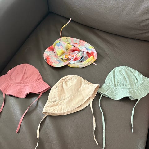 Selger to nesten nye solhatter fra HM, til jente. En rosa, og en hvit med blomster på. Str 1-2 år.