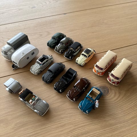 30 Modellbiler fra Dinky Toys i hyller selges samlet