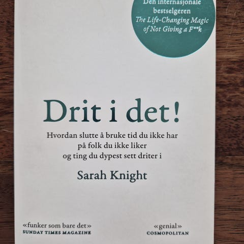 Sarah Knight Drit i det! bok på norsk omhandler selvutvikling og livsstil, og er utgitt av Spartacus forlag. Boken tar for seg hvordan man kan prioritere tid og energi, og hvordan man kan forholde seg til ting og mennesker på en mer bevisst måte.