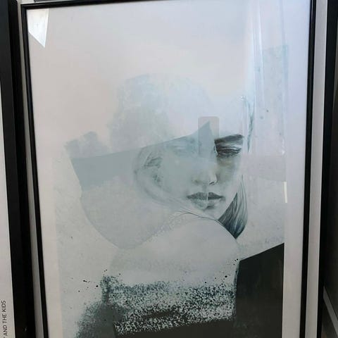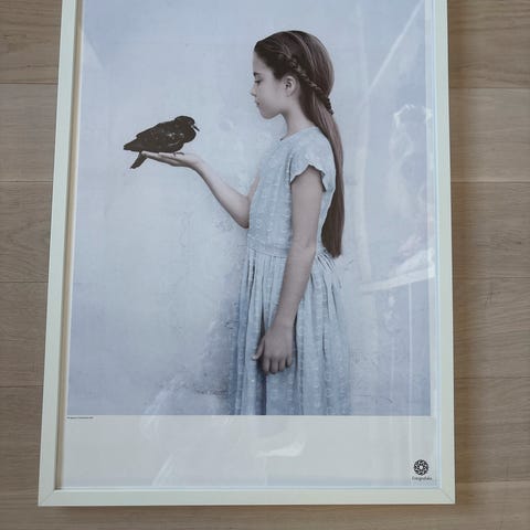Vee Speers kunstplakat med jente og bladmotiv i hvit ramme