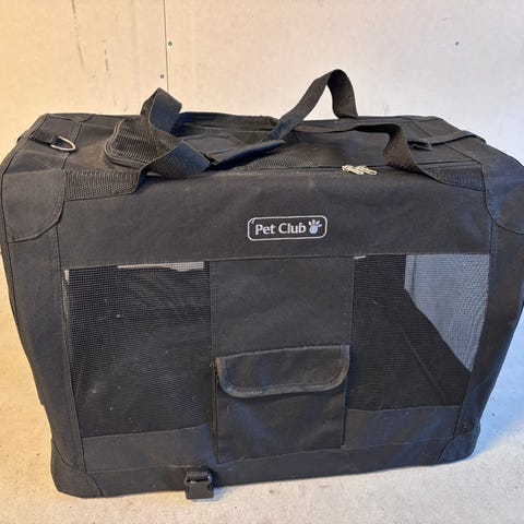 Shtüg transportbur for kjæledyr i blå og svart farge. Buret har nettingpaneler på sidene for god lufting og sikt, samt åpning foran med lukking. Egnet for transport og midlertidig oppbevaring av mindre kjæledyr som hund eller katt. Bærehåndtak på toppen gjør det enklere å flytte buret.