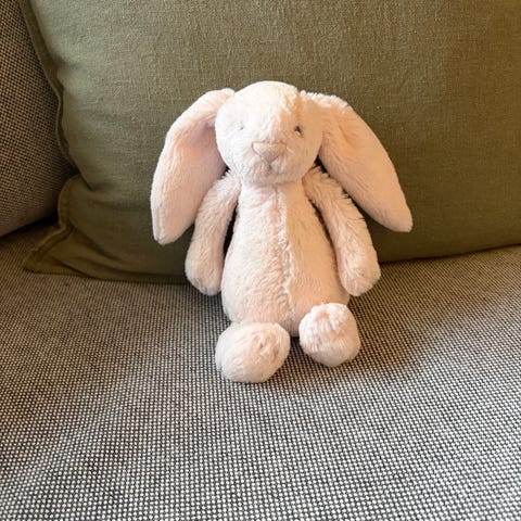 Liten rosa kanin bamse fra Jellycat. 13 cm sittende.