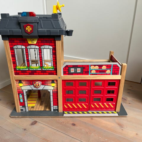 Treleker - brannstasjon, brannbil og diverse tilbehør som vist på bilder