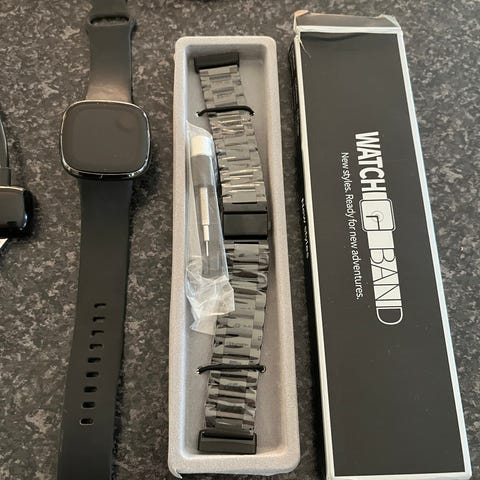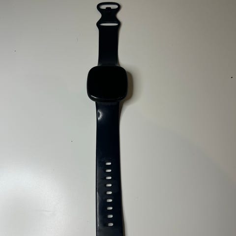 Fitbit Versa 4 smartklokke selges, den er godt brukt i flere år og er slitasje på reimen. Lader følger med