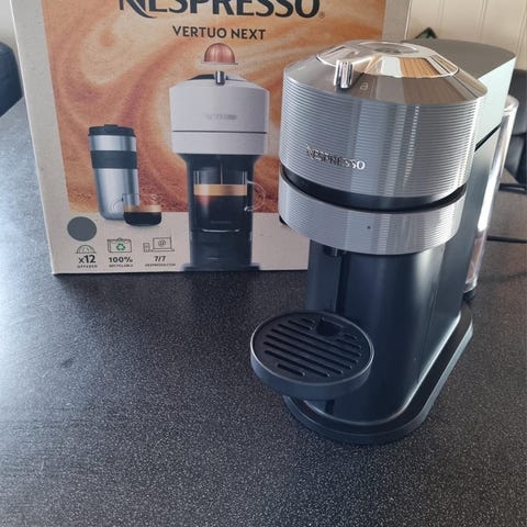 Kaffen smakte som på kafé og maskinen fungerte veldig fint inkl melkeskummeren. Original eske medfølger.
