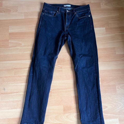 Cubus jeans for herre i blå farge. Buksen er i størrelse L med livvidde W32. Materialet er bomull. Klassisk 5-lommers modell med glidelås og knapp i gylf. Passer til hverdagsbruk og kan kombineres med ulike overdeler for et enkelt og nøytralt uttrykk.