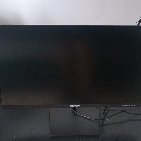 Cepter skjerm på 27 tommer. Skjermen har tynn ramme og står på en rektangulær fot. Strømforsyning følger med, som vist på bildene. Egnet til vanlig PC‑bruk som kontorarbeid, nettlesing og enkel underholdning, avhengig av tilkoblingsmuligheter og oppløsning på den aktuelle modellen.