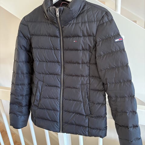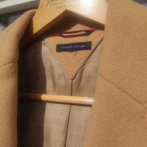 Tommy Hilfiger jakke for dame i størrelse S. Jakken er brun og laget i bomull. Den har klassisk krage, knappelukking foran og klaffelommer. Passer som en lett ytterjakke eller blazer-lignende jakke til hverdagsbruk.