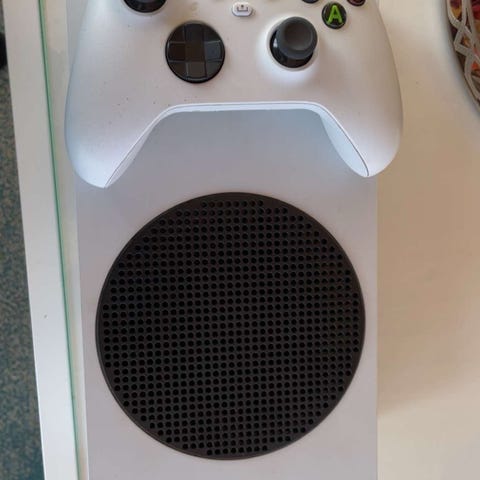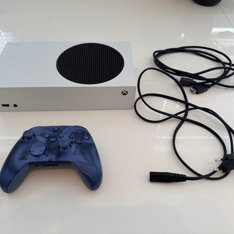 Xbox Series S selges, den har et hål på baksiden fra forrige eier men den fynker helt fint. Kommer med en kontroller og kabler.