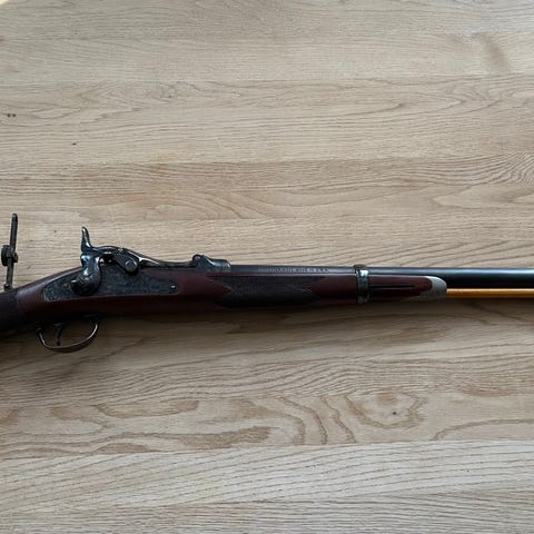 Caliber .45-70 Gov. Ny i dag koster denne 33.500,- pluss det dioptersiktet som sitter påmontert på min. Koster vel 3-4000,- det også. Har sakset tekniske specs fra nettsiden til PEDERSOLI. Se bilde. Denne har kun blitt brukt til Long Range skyting i Western.