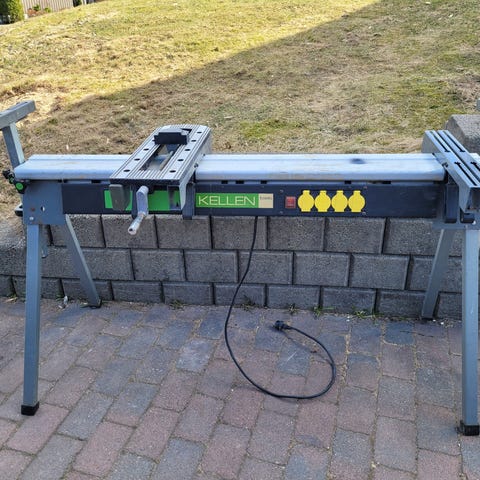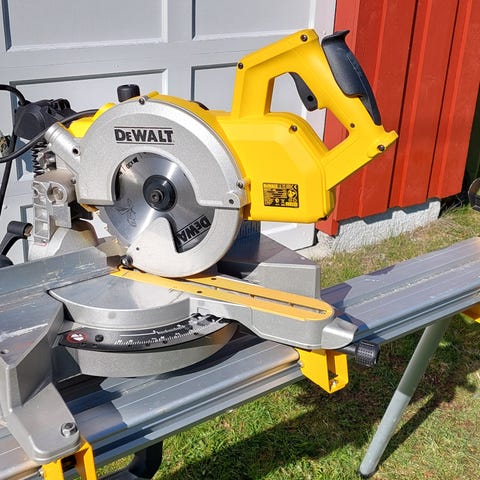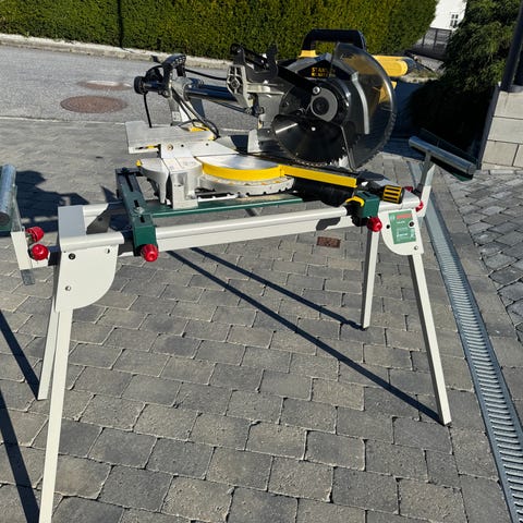 meget pen og bra Dewalt kombisag med rullebord selges rimelig,dette er altså en praktisk kvalitetsag som har kapp og gjærsag på ene siden og klyvsag på andre siden når en vender bordet.kraftig og stillegående induksjonsmotor på 2000 watt.250mm blad.bordet på kapp og gjærsagdelen kan dreies til 45 grader begge veier samt at den kan tiltes en vei.3 veis tilkobling før støvavsug.integrerte bærehåndtak.saga er lite brukt og meget godt tatt vare på av privatsperson som har brukt den som hobbymaskin.det følger med Dewalt rullebord som kan monteres på alle sider av sagen,slik at det kan brukes både på klyv og kapp rullebordet er opplakkert..nypris på sag og bord er ca 12000 kr