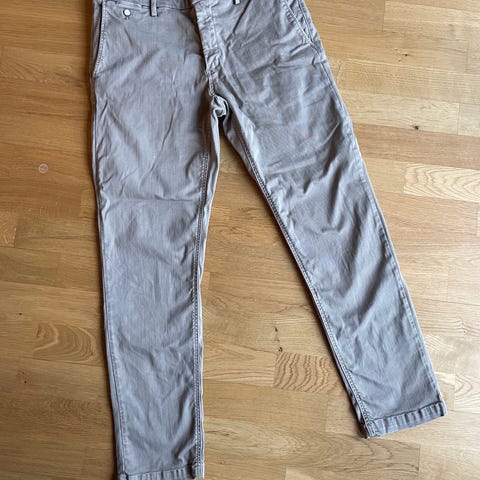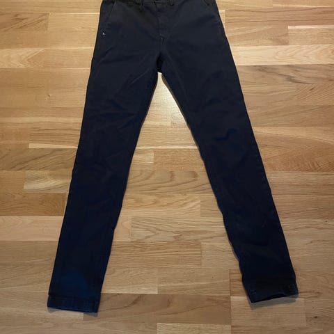 Don Dup bukse for herre i størrelse S med livvidde W31. Ikke jeans men mer chinos. Buksen er blå og laget i bomull. Kjempe komfortable og fine. Noen små bruksmerker som ikke er så veldig synlige (se siste bilde)