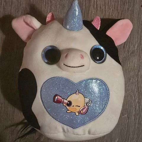 Ty kosedyr formet som en rund enhjørning med sebramønster.