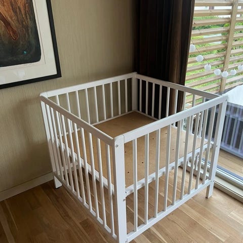 Lekegrind 80x80 hvor bunnen kan festes i to ulike høyder