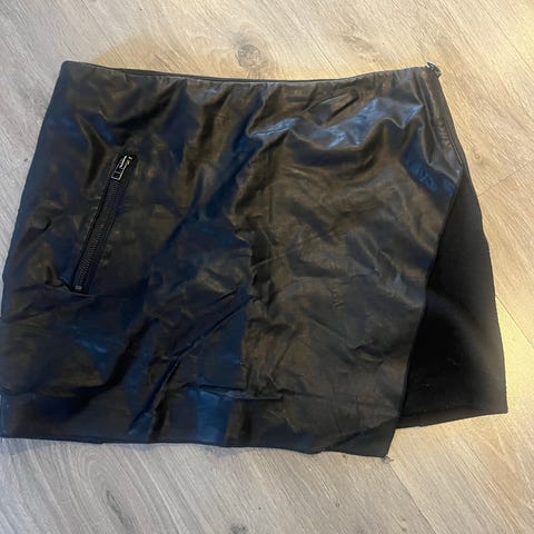 Shein dongeriskjørt for dame i størrelse L. Skjørtet er laget i denim og har lys blå farge. Det er kort i modellen med høyt liv og glidelås bak. Skjørtet har rynkedetaljer og knytebånd i sidene som kan justeres for ønsket passform og lengde. Passer til hverdagsbruk eller enkle antrekk med topp eller genser.