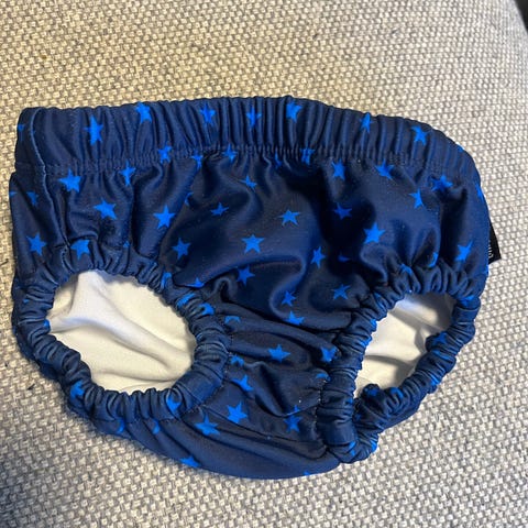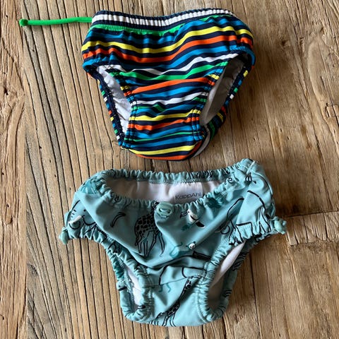Badebleier fra Polarn o Pyret. Fungerer veldig fint, kjekt å ha to for evt. behov for skift mens man bader.