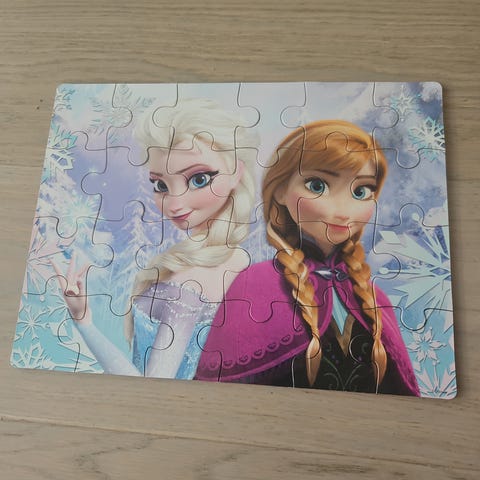 - 3 pent brukte og intakte puslespill fra Ravensburger med motiv av Elsa og Anna fra Frost. Fullstendige og fine. Passer for barn i alderen 5-6 år.