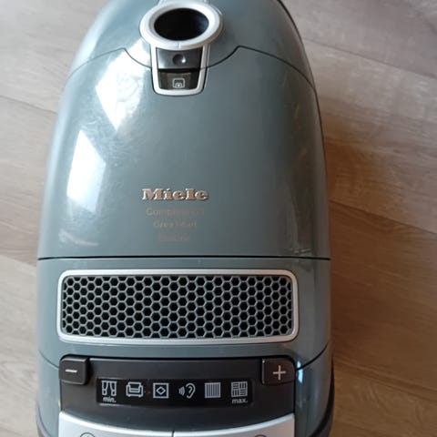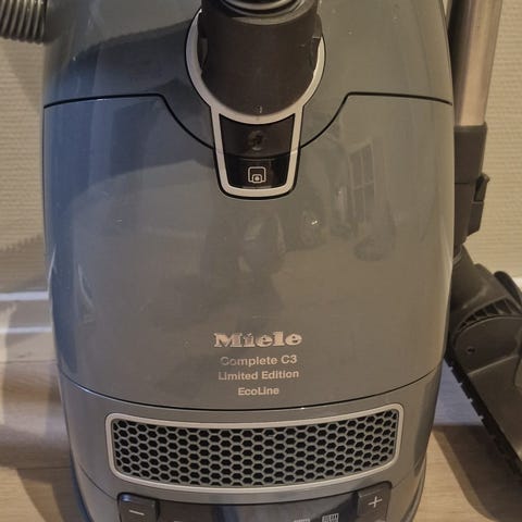 Selger en Miele Complete C3 Celebration PowerLine støvsuger. Dette er en kraftig kvalitetsstøvsuger fra Miele, kjent for god sugeevne, solid byggekvalitet og lang levetid.
