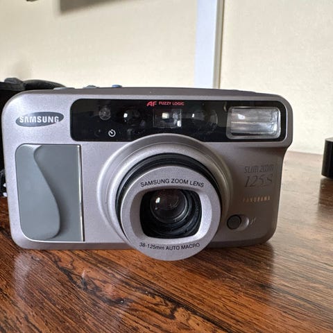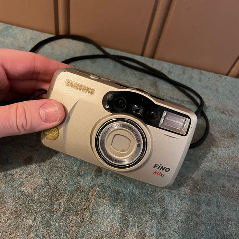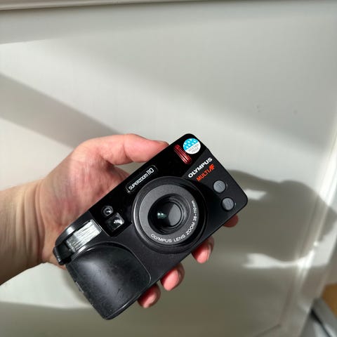 analogt kamera vintage camera retro kamera kompaktkamera compact 35mm 35 mm p&s Y2K point and shoot pek og skyt 90s 1990s champagne