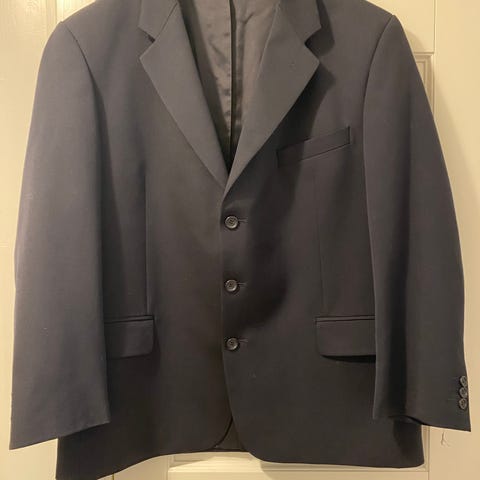 George Marshall dressjakke for herre i størrelse L. Jakken er svart og har glatt fôr. Ytterstoffet inneholder viskose, som gir et mykt og behagelig fall. Klassisk modell med knepping foran og jakkeslag, samt lommer i front. Egnet til bruk sammen med dressbukse eller penbukse ved formelle og semi-formelle anledninger.