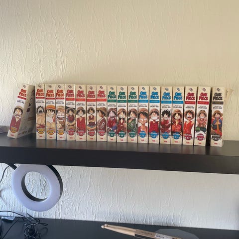 One Piece manga bøker i norsk utgave. Serien er skrevet og tegnet av Eiichiro Oda og utgitt på norsk av Outland Forlag. Bøkene følger eventyrene til Monkey D. Luffy og mannskapet hans på jakt etter skatten One Piece. Formatet er typisk pocket/manga-størrelse med svart-hvitt-tegninger. Flere ulike volum inngår i samlingen, blant annet titler som «Slaget mot buggy-piratene». Passer for lesere som ønsker den norske oversettelsen av One Piece i fysisk bokformat.