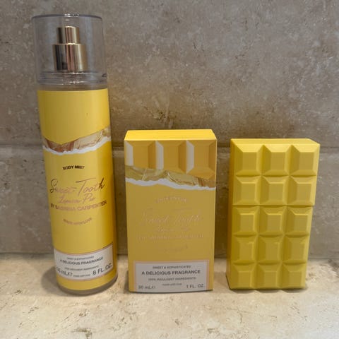 Sabrina Carpenter Sweet Tooth bodymist i flaske på 236 ml (8 fl. oz.). Produktet er en kroppsspray med duft, levert i en rosa plastflaske med spraydyse. Egner seg til daglig bruk på kropp for å tilføre en lett duft. Passer for personer som liker søte og feminine dufter.