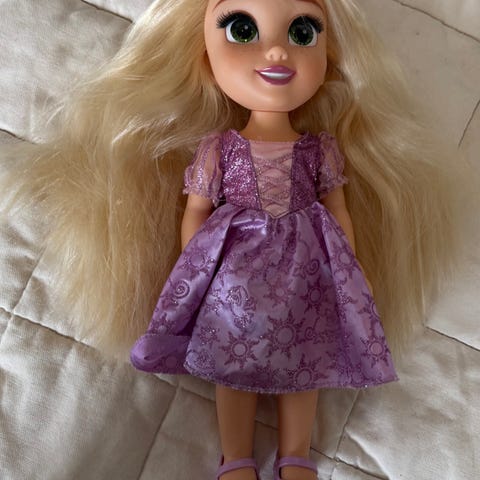 Disney dukke med rødt hår og stor hodeformet plastkropp. Dukken har på seg en rød kjole med gullfarget overdel og detaljer, samt røde sko. Egnet som leke for barn eller som samleobjekt for Disney-figurer. Dukken er laget i hard plast med mykt hår som kan børstes og styles.