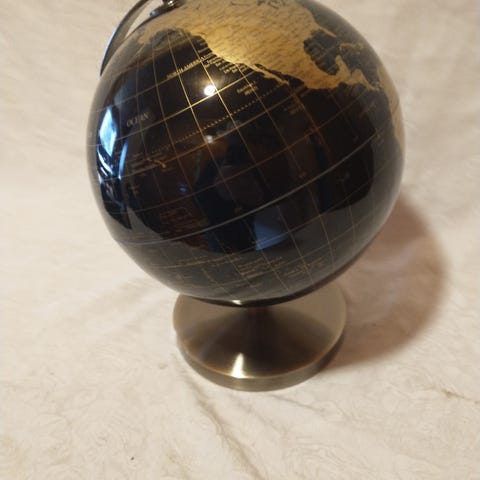 Liten retro globus i god stand. Passer som pynt i en hylle eller skrivebord.