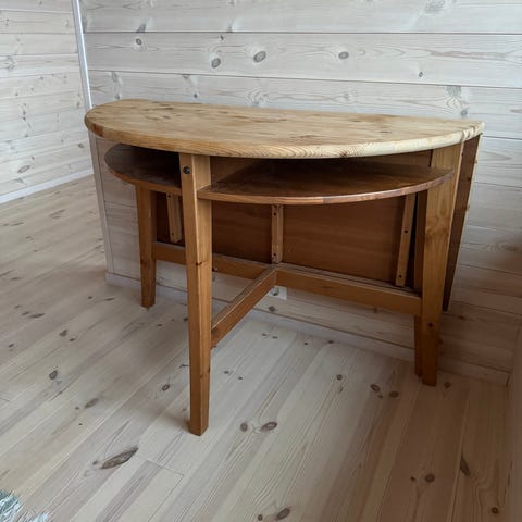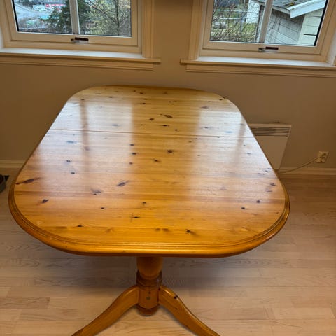 Spisebord kr 500,- og sidebord kr 500,- heltre furu