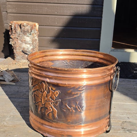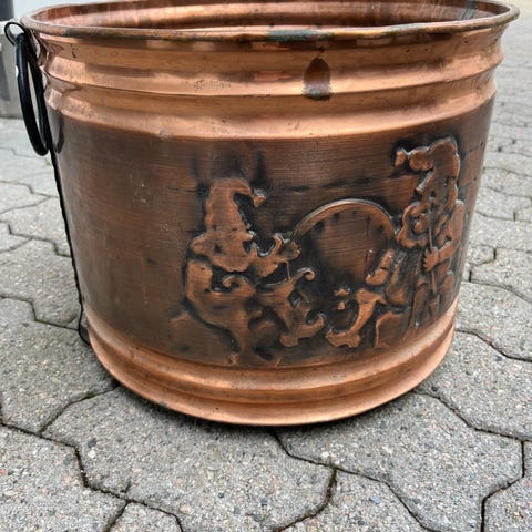 Vedbøtte/Kobberbøtte med relieffmotiv og hank