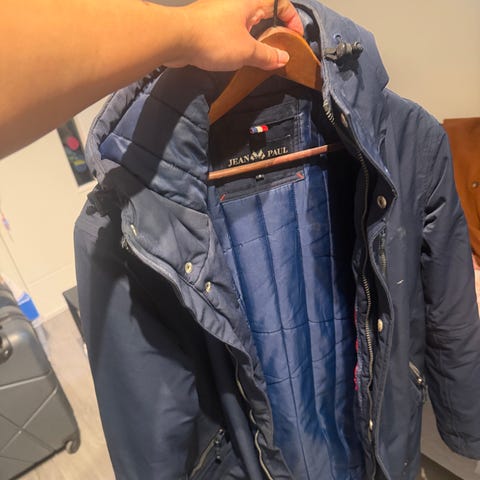 Jean Paul vinterjakke for herre i størrelse S. Jakken er blå og laget i polyester. Modellen har gjennomgående glidelås med knappestolpe, høy krage og vattert utførelse. Foran er det to brystlommer med glidelås og to store frontlommer med klaff og trykknapper. Ermene er lange med rett avslutning. Passer som ytterjakke i den kaldere sesongen.