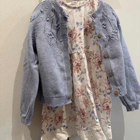 Cardigan er ny med etiketter. Skjørtet er brukt 1-2 ganger.