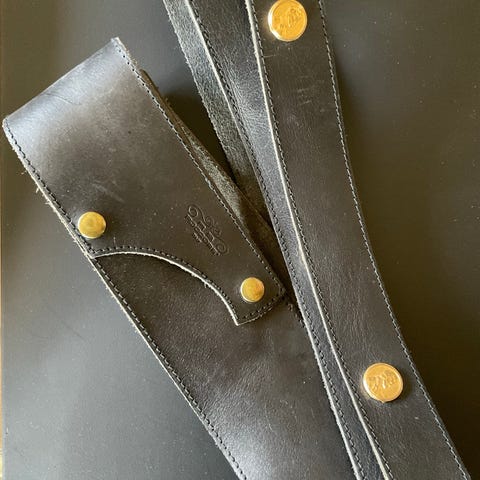 Lengde 85/90 cm. Bredde 4 cm. Skinndetaljer på endene.