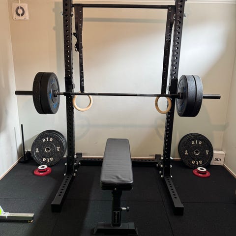 Komplett hjemmegym / styrkepakke – rack, benk, stang og vekter