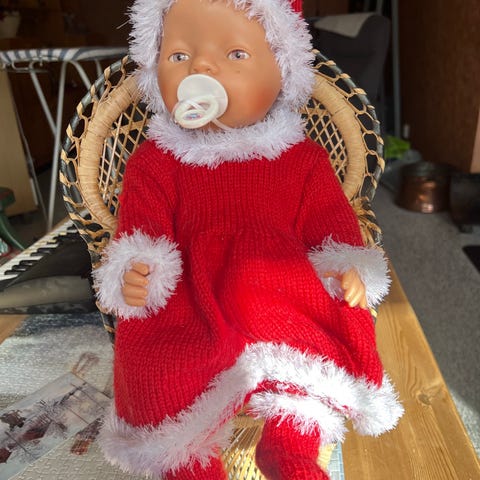 Baby Born dukke med flere klessett og tilbehør. Dukken kommer med body, hodeplagg og smokk. I tillegg følger det med ulike antrekk, blant annet strikkede plagg, kjoler og andre dukkeklær. Det følger også med noe utstyr som potte, tåteflaske, tallerken og bestikk. Passer til lek med babydukke og påkledning.
