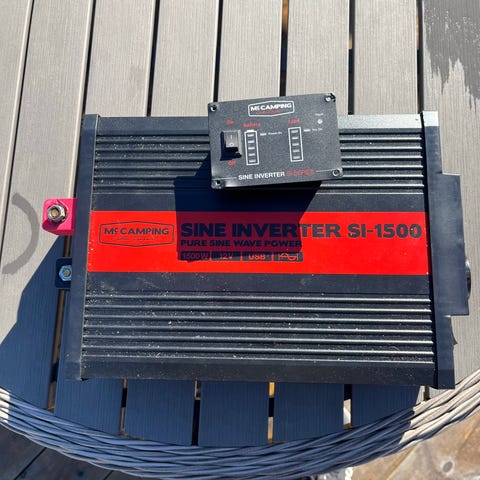 Den har vært installert i ny bobil og brukt tilsammen maks 2-3 timer. Selges fordi jeg har behov for kraftigere inverter.