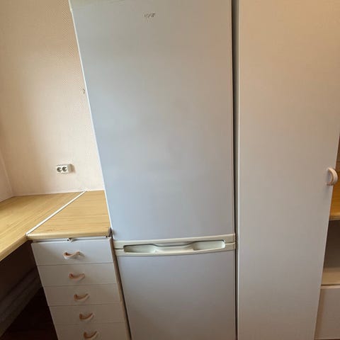 Kjøleskapet har flere hyller i hoveddelen og dørhyller for oppbevaring av matvarer og flasker. Nederst er det grønnsaksskuff. Frysedelen øverst har hyller for enkel organisering av frosne varer. Kombiskapet er frittstående og passer inn på kjøkken eller i andre rom der det er behov for både kjøle- og frysefunksjon i ett skap.