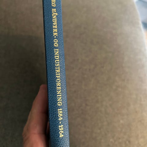 Solid innbundet bok i halvbind med marmorerte permer.