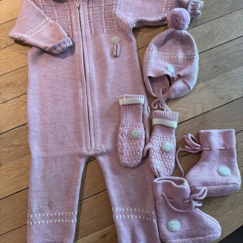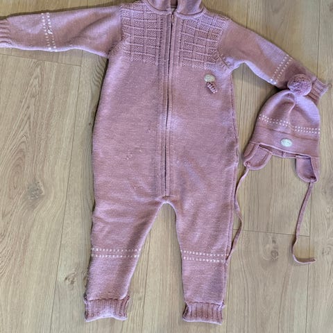 Lillelam heldress for barn i størrelse 80. Heldressen er i rosa merinoull.