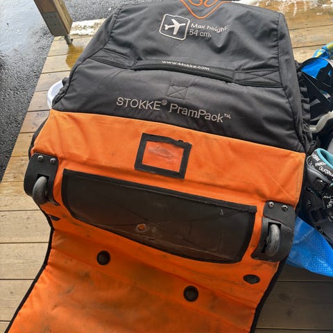 Prampack bag til å bruke når man skal reise med fly. Brukt en gang. Kan ikke se noe hull. Bare møkkete etter den har vært på fly. Vesken er polstret og kan brettes helt ut for å omslutte vognen. Den har flere stropper og fester for å sikre barnevognen under transport, samt håndtak og hjul for enklere håndtering. Egnet for transport av barnevogn på reise, for eksempel med fly eller bil, og beskytter vognen mot smuss og slitasje. Alt er inntakt på den. Selges videre da vi ikke har bruk for den lenger. Ny pris var 1499 på barnas hus🌸